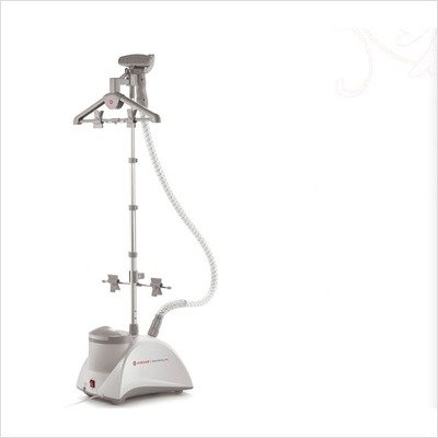 SINGER's SteamWorks Pro delivers 90 minutes of steady, gentle steam to de-wrinkle and freshen a variety of fabrics from silk to wool in just 45 seconds. A telescoping pole with a versatile 360-degree rotating hanger system and steaming accessories will have you using this every day. A crease clip, fabric brush, handheld steaming board (for shirt pockets) and protective glove are all included to help with getting that perfect finish for your wardrobe. Curtains and upholstery can be freshened up quickly. Storage is simple with the collapsible hanger and pole. The hose is insulated and fabric covered. The steamer weighs 11 pounds (empty), the hose is 60 inches long, and the power cord is 94 inches. A 2 year limited warranty is included.